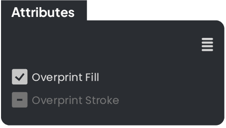 The elements that you have coloured in the respective technical spot colour (such as “Foil”) must now be adjusted to the overprint. To do this, select these elements with the selection tool (in the tool panel) and open the attributes panel in the window. Under Surface click on the overprint option. For a contour line, select the Overprint contour option. The “overprint” option makes the areas under the object to be overprinted continuous and not recessed.