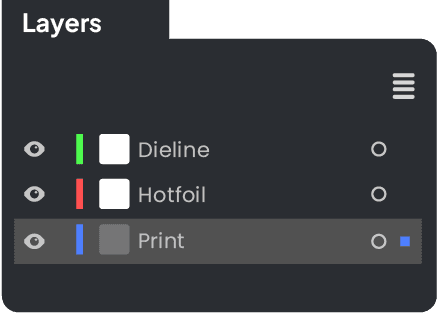 Now drag the elements coloured with the technicolour, e.g. “Foil”, to the corresponding Window > Layers. To do