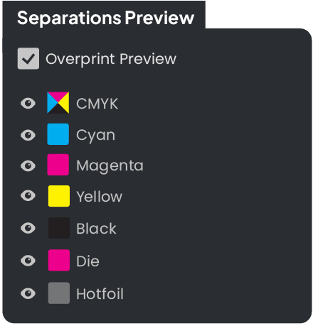 To check whether the settings are as desired, open the window > Preview separations in the control panel. To